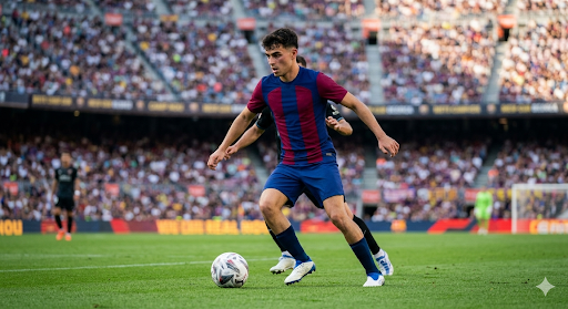 12分のヤマルが縦パス受けた時にダイレクトで後方のスペースにいたフェルミンロペスにパス出したシーンは一気に局面を変えるプレーだった